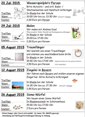 Viel Spaß wünscht Euch das Ferienteam: Birgit Rediwanov, Iris Mattulat, Janine Glinsmann, Rita Glinsmann, Sonja Mehrtens, Silke Berg und Imke Brunkhorst