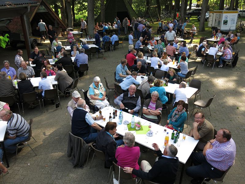Die Ostereistedter saßen nach Männern und Frauen getrennt. Auch sie wollten sich zum Kaffeetrinken umsetzen. Anders die Jugendlichen der Dörfer. Sie setzten sich gleich zusammen an einen Tisch und holten sich nach dem Essen die kleinen Fußballtore aus dem Spielmobil. (rsk, ZZ 23.09.2014)