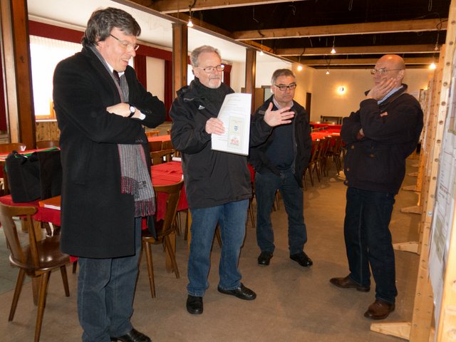 Nach dem Termin im Dorf-Treff und einen Rundgang durch die KiTa ging es dann in den Gemeinde-Sitzungsraum, wo Kaffee und Mohnkuchen auf den Besucher und die Gastgeber wartete. An der Kaffeetafel unterhielten sich die Rhader mit Hans-Peter Daub über die Zukunft der Dörfer vor dem Hintergrund des demographischen Wandels, also über die Nahversorgung, den öffentlichen Nahverkehr, Barrierefreiheit, die Grundschule, wie man die jungen Leute im Dorf halten kann, Lückenbebauung. Hans-Peter Daub zeigte sich sehr kenntnisreich und machte deutlich, dass für ihn die Interessen der Bürger und ihr Engagement einen sehr hohen Stellenwert haben. Schließlich mündete das Gespräch in die Gretchenfrage, die da lautete, wie Hans-Peter Daub sich gegenüber dem Rhader Projekt verhielte, sollte er denn Landrat werden. Daub antwortete: „Es ist doch toll, wenn die Bürger Initiative zeigen und aktiv werden, etwas Besseres kann einem Landrat doch gar nicht passieren. Ich müsste doch mit dem Klammerbeutel gepudert sein, würde ich das nicht unterstützen! ” (fb 15.03.2014)